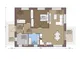 Дом имеет удобную планировку с двумя спальнями и двумя ванными комнатами. Общая площадь составляет 82,47 м², что позволяет разместить всё необходимое для комфортной жизни. При этом площадь застройки — 98,03 м², что обеспечивает достаточно места для реализации различных дизайнерских решений.